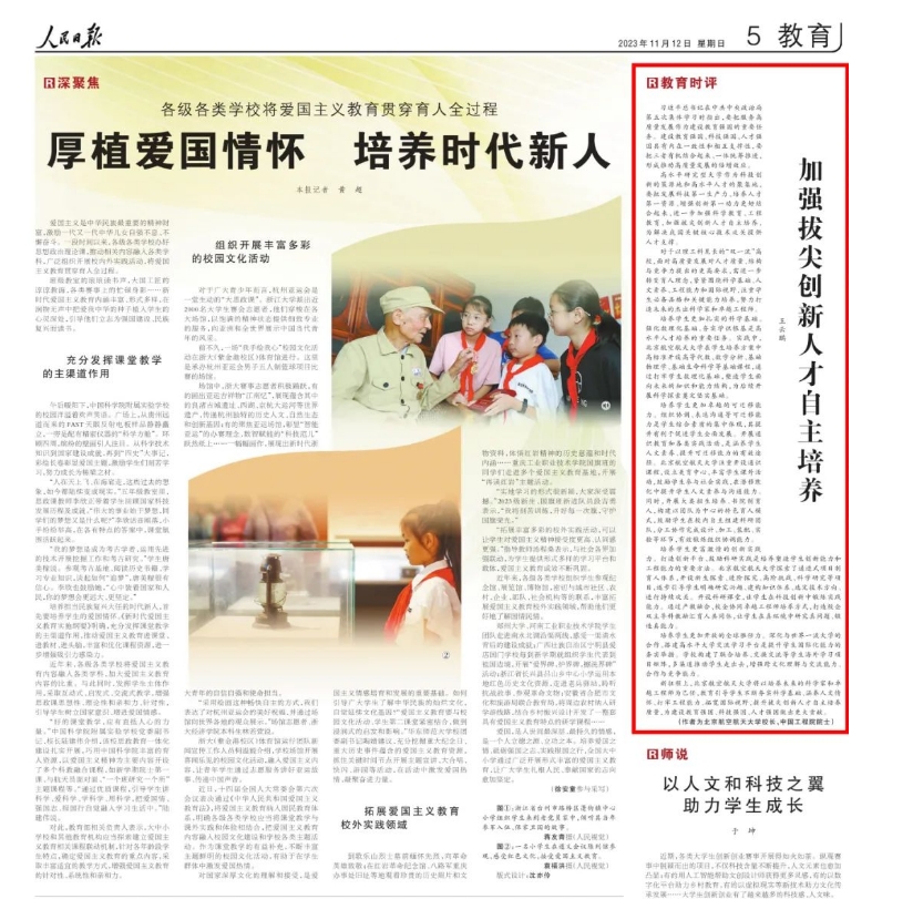 《人民日报》:谈球吧网页版登录入口培养拔尖创新人才...
