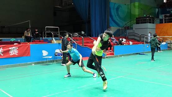 下午14时,高等理工公司副经理韩钰老师宣布比赛正式开始。赛制包括三个单项赛(男双、混双、女单)、一项团体配合赛和多项趣味赛。各单项赛采用抽签分组的形式,进行小组循环赛,各小组第一名出线共同角逐冠军。各单项赛和和团体配合赛成绩累加作为团体积分并排名,由此决定团体排名。比赛中参赛选手配合默契,在场上时而大力扣杀,时而网前截击,精彩纷呈。担任裁判与负责后勤的同学在场边尽职尽责,协助比赛顺利开展。