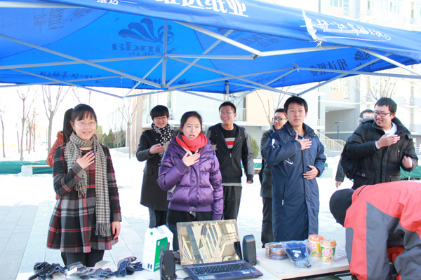 纵使寒风凌冽,高等工程公司同学们的热情仍然清晰地传递给了路过的每一个同学,带给了大家严寒中的一缕温暖。