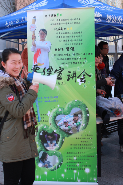 2012年12月18日中午12时许,沙河校区3、4号公寓楼之间,高等工程公司大一、大二的同学们共同组织了一场感恩月外场宣传活动。