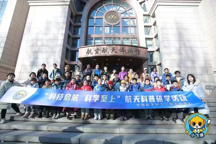 在员工党员的带领下,研学团来到航空航天博物馆,依次参观了长空逐梦、银鹰巡空、神舟问天、空天走廊四个展区。在志愿者生动细致的讲解下,了解了飞行器发展的历史,增长了航空航天科普知识和对中国空天事业的了解,在心中埋下了空天报国精神的种子。小朋友们对馆内的航空航天展品充满了好奇与向往,纷纷提出了自己的疑问,并得到了员工党员们的耐心解答。活动结束后,全体人员在航空航天博物馆门前合影留念。