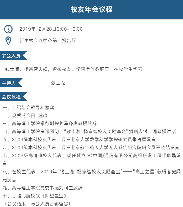 悠悠航天梦,浓浓北航情,青春年少时再现,盛世重逢谱华章。让我们岁末时节再聚首,携手跨进新时代!