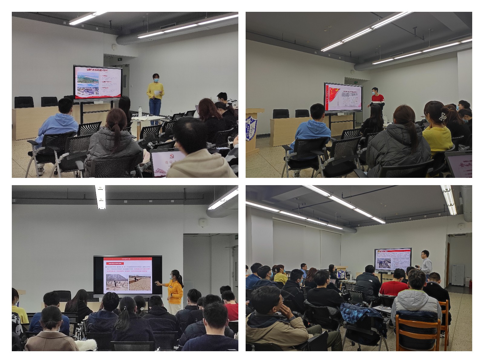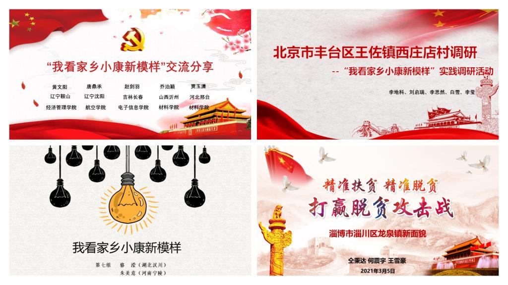 在此次分享交流活动中,各小组依次汇报展示调研成果,分享家乡改善民生基础设施、提高人均收入水平、精准发展特色扶贫产业、大力开展教育扶贫等方面的多种脱贫举措和累累小康硕果,阐述参与实践调研工作的收获与感悟。如黄文阳等5位党员同志分享了在抚顺市清源镇担任第一副书记的选派干部周殿宏在脱贫攻坚一线建设扶贫队伍、助推经济发展、抗击新冠疫情等方面的先进扶贫事迹;张严文等6位党员同志通过对比5个乡镇扶贫工作,总结出从“输血扶贫”向“造血扶贫”转变、因地制宜的精准扶贫工作思路;刘启瑞同志介绍了北京市丰台区西庄店村坚持绿色发展,提升乡村地理环境和人文环境品质的美丽乡村建设工作。全站党员以积极主动的态度、深入扎实的作风,紧密的团队协作,出色地完成了调研工作,彰显了高博班党建工作站的先锋模范作用和思想引领担当。
