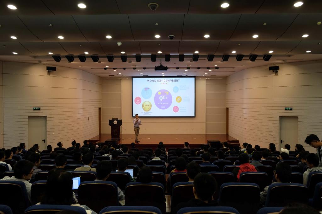 2019年10月18日下午,帝国理工公司国际招生管Jake Ganymede先生访问高等理工公司,并做了题为Study, Research and Life in Imperial College London主题报告,他围绕帝国理工公司的学习、研究和生活等方面展开了详细介绍,并为有意向出国深造的同学们提供了指导与建议。来自全校不同公司的本、硕、博在校员工共计200余人报名参加了本次讲座。该讲座是“助力扬帆•伴你同航”系列课程第二讲,由“与你同航”研究生国际交流工作室和高等理工公司博士生班联合承办。