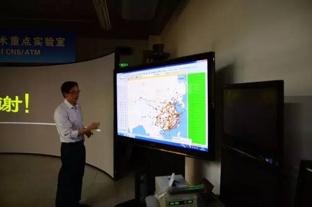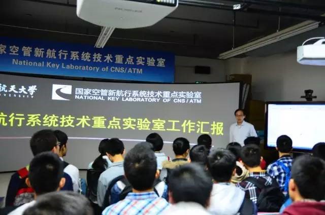 电子信息工程公司的系统技术重点实验室,由王志鹏老师组织参观。同学们一进去实验室就被旁边的展板吸引住了。王老师开始介绍说,这是可以看到全中国所有飞机状态的系统,无论是起飞的,还是下落的,飞机的型号也都可以看到。而该展板的旁边则是首都国际机场的状态。大家都被这个新型技术吸引住了。接着王老师开始为我们讲解,北航实验室与国内国外的公司与企业共同合作研究。最后大家都对实验室的各种新型器材,以及这个技术充满了好奇。