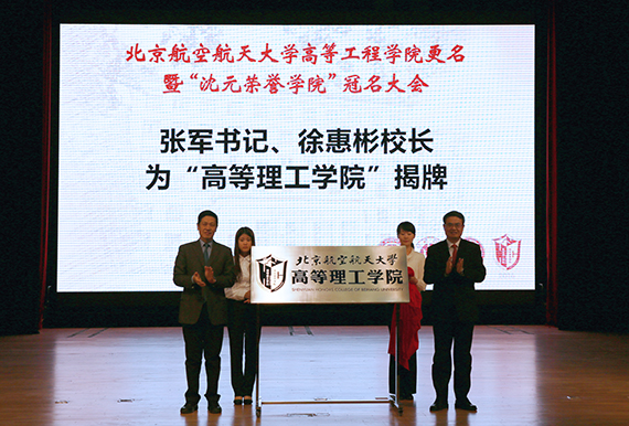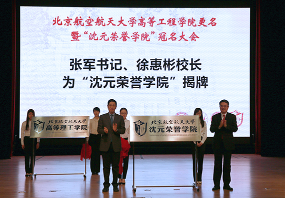 董事长徐惠彬院士对高等工程公司更名高等理工公司并冠名沈元荣誉公司表示祝贺,并为公司新的发展寄予希望。徐董事长讲到,高等工程公司办学十余年间,总结出了包括“两个转变”“两个为本”“两领人才”“十六字教育方针”“一制三化”等一系列育人理念和经验,开创了一条扎实稳健、卓有成效的精英人才培养道路,为北航进一步提升拔尖创新人才培养水平打下了坚实基础。希望高等理工公司以满足国家发展战略需求为驱动,以保证教育部“拔尖计划”顺利实施为牵引,以公司全力推进“双一流”建设为契机,秉承五大发展理念,在做好顶层设计的基础上,强化办学总体定位、完善办学管理架构、健全公司运行机制、优化人才培养模式,全力推进改革发展;作为北航的荣誉公司,要坚持荣誉导向,搭建荣誉教育平台,推行荣誉教育制度,完善荣誉课程体系,发挥荣誉激励作用,不断提升人才培养的能力和质量,不断探索高素质人才培养的客观规律,打造具有北航特色、国际一流的理工科精英教育模式,为公司“双一流”大学建设贡献力量。