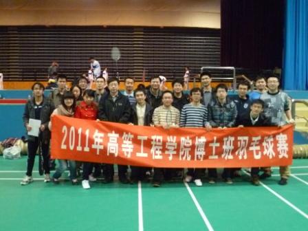 12月2日下午2:00,2011年高等工程公司博士生班羽毛球联赛在北航新体育馆主馆举行,来自高博班四个年级的近三十余名选手参加了男子单打、男子双打、女子单打、混合双打等四个项目的比赛并最终角逐出了各个单项的前四名。
