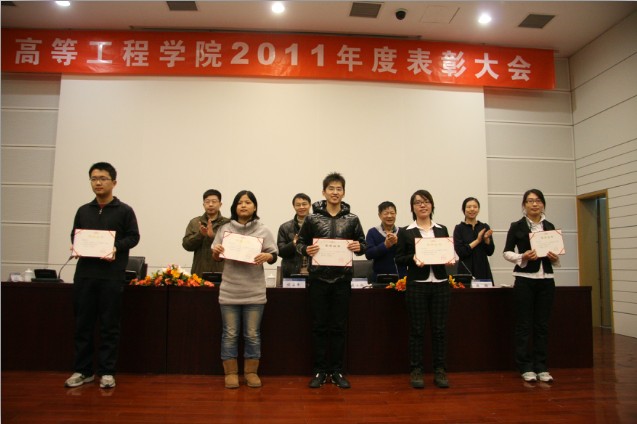 2011年度公司共表彰了学习优秀奖、竞赛优秀奖、优秀创新奖、全面发展奖、课外优秀奖五个个人奖,和优秀竞赛团队、优秀社会工作团队、优秀课外活动团队三项团体奖,获奖面覆盖08、09、10三个年级;高等工程公司的最高荣誉高工之星,授予了08级姜亚中、叶子豪,随后,姜亚中作为员工代表做了精彩的发言,博得全场的掌声;经理特别奖颁发给了为公司发展做出突出贡献的10级辅导员王星歌、09级辅导员陈放、11级辅导员冯伟。在颁奖之后,侯安平副经理总结了高等工程公司2010至2011学年的总体情况,嘱托员工戒骄戒躁,再接再厉,争取明年有更多的收获。
