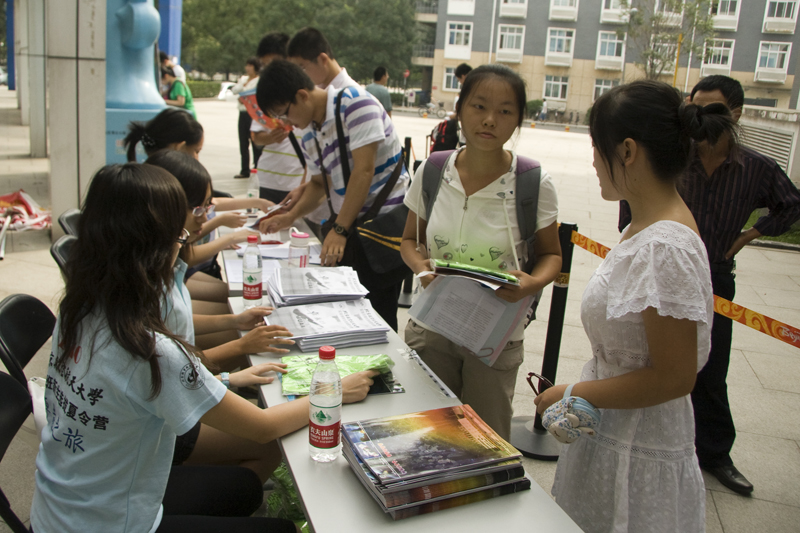 八点半左右,报到工作正式开始,比预计时间提前了半个多小时。签到、分发一卡通、领取手册及营衫:在志愿者的组织协调下,新生报到工作有序进行。此外,报到点还特意设立了咨询处,就家长和员工所关心的食宿安排、选拔活动及新校区情况等问题进行了细致耐心的解答。