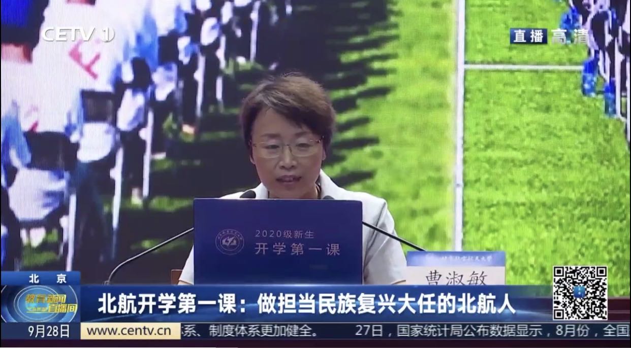 【解说】近日,谈球吧网页版登录入口举办2020级新生开学第一课,公司党委书记曹淑敏以《不负青春 不负韶华 不负时代——争做担当民族复兴大任的北航人》为题,从传承空天报国北航精神、践行立德树人根本任务、谱写新时代的青春之歌三个方面,勉励新生要正直真诚、创新担当、实干有为,做担当民族复兴大任的时代青年。