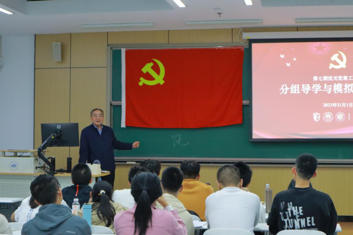 第二阶段为特邀党员授课环节。马军针对每个小组的汇报内容进行了补充。关于“两弹一星”精神他谈到了钱学森自传中提到的“三次激动”,赞扬了两弹一星元勋们的爱国情怀和民族志气。关于抗美援朝精神他讲起了抗美援朝与为国而生、与国同行的北航的紧密关系。最后,马军分享了红岩精神的内容和内涵,并号召学员们要继承和发扬伟大的红岩精神,做一身正气的党员,赓续共产党人精神血脉,始终保持大无畏的奋斗精神,鼓起迈进新征程、奋进新时代的精气神。