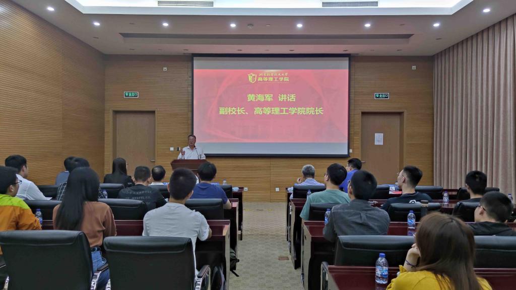 黄海军对全体高博班新生表示热烈的欢迎和衷心的祝贺。他指出,强化理论基础、促进学科交叉、开展原始创新是成立高博班的初衷,希望同学们以服务国家重大战略需求和挑战国际科学技术前沿为目标,努力做心中有家国之爱、眼里有创新之光、脚下有奋进之力的新时代最美奋斗者,不断超越自我,不断突破创新,为实现民族复兴的时代大任贡献智慧和力量。