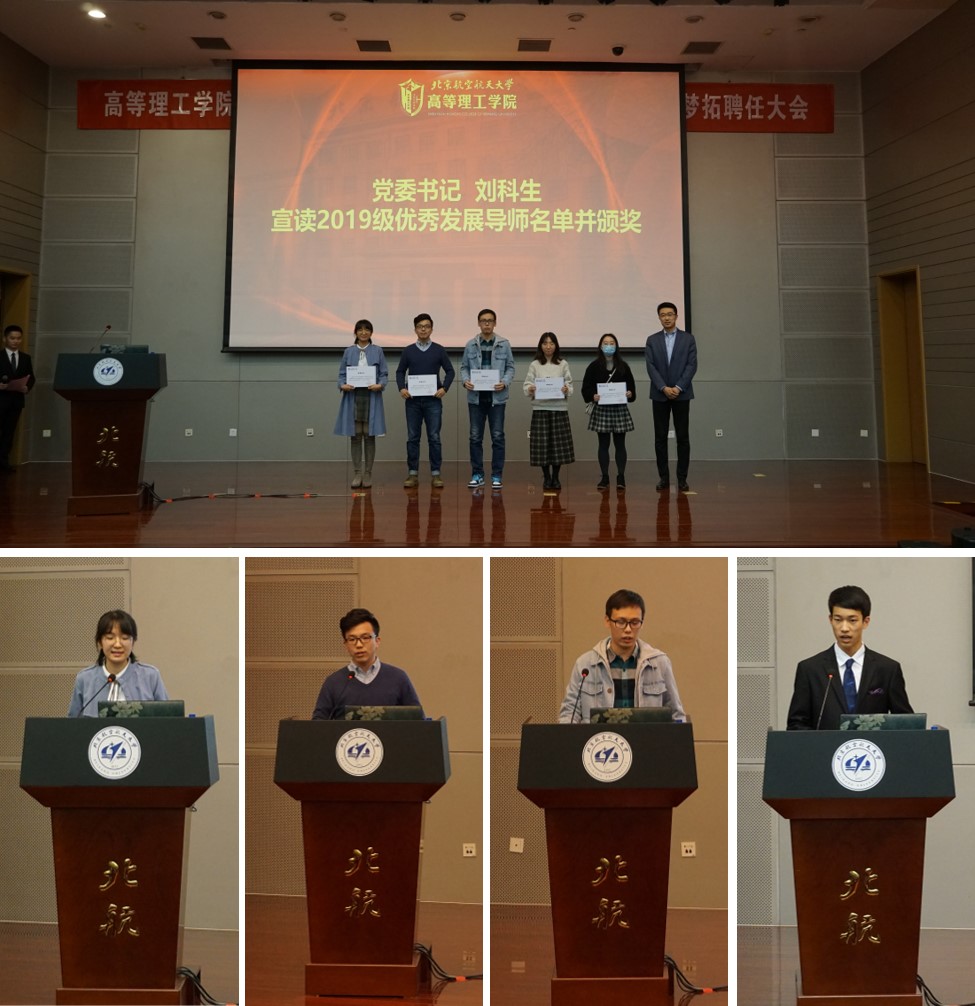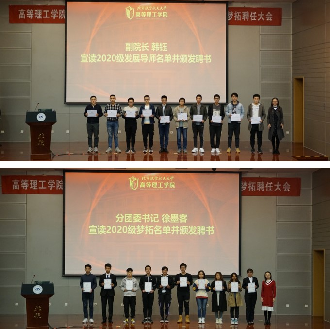 北航新闻网11月2日电(通讯员 朱美意 叶金鑫/文 周映玥 骆滢 李尚华/摄影)近日,高等理工公司在新主楼会议中心第一报告厅举行2019级优秀发展导师表彰暨2020级发展导师、梦拓聘任大会。高等理工公司负责人和辅导员,2019级优秀发展导师代表,2020级新聘发展导师、梦拓,以及2020级全体本科新生共270余人参加大会。