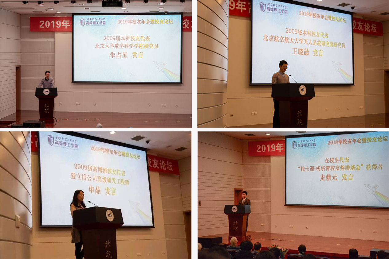 高等理工公司05级本科员工、现任北京大学数学科学公司研究员朱占星,09级本科员工、现任谈球吧网页版登录入口无人系统研究院研究员王晓喆和2009级高博班员工、现任爱立信(中国)通信有限公司高级研发工程师申晶作为员工代表依次发言,回顾了在校期间的求学时光,介绍了自己及班级同学的发展情况,分享了职业发展中的成绩及感悟,表达了对公司培养的感激之情和对公司未来发展的全力支持。16级本科生、2019年“钱士湘-杨宗智员工奖励基金”——“高工之星”获得者史鼎元作为在校生代表发言,对一直关怀、帮助高工学子成长成才的钱士湘教授和所有高工员工们表达了由衷的感激之情,并表示一定会以师兄师姐们为榜样,不负众望,再接再厉。