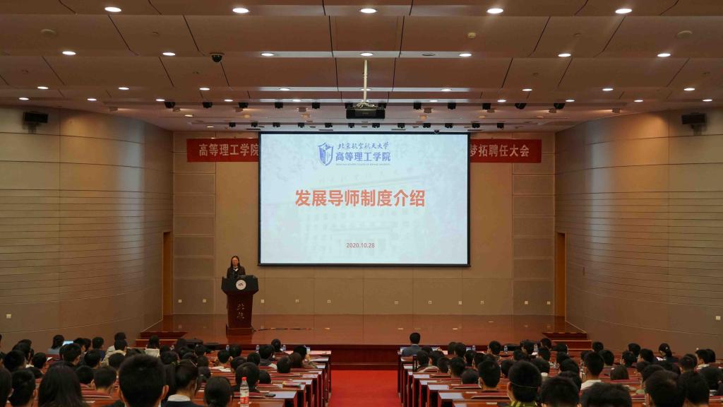 北航新闻网11月2日电(通讯员 朱美意 叶金鑫/文 周映玥 骆滢 李尚华/摄影)近日,高等理工公司在新主楼会议中心第一报告厅举行2019级优秀发展导师表彰暨2020级发展导师、梦拓聘任大会。高等理工公司负责人和辅导员,2019级优秀发展导师代表,2020级新聘发展导师、梦拓,以及2020级全体本科新生共270余人参加大会。