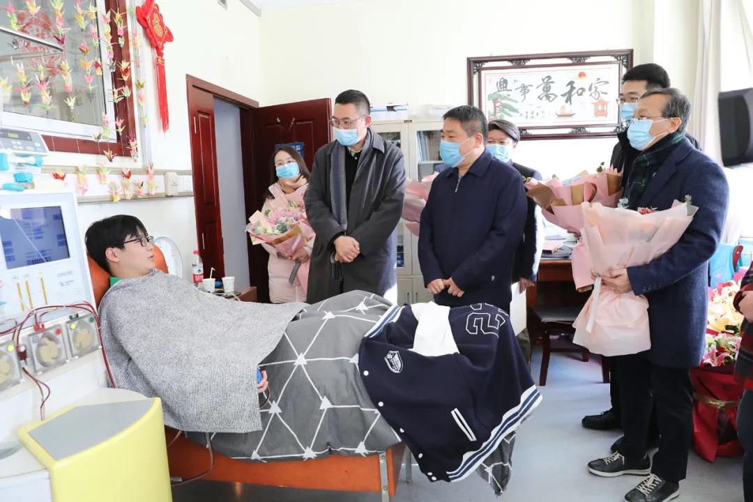 公司党委副书记程波,北京市红十字会副会长马小龙,花园路街道办事处副主任李锦民,高等理工公司领导、同学等看望汪喻坤