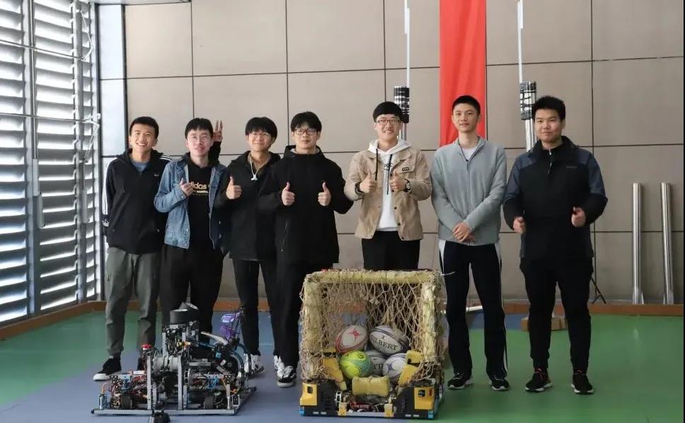 获得全国老员工机器人大赛一等奖,汪喻坤(中)与团队同学合影