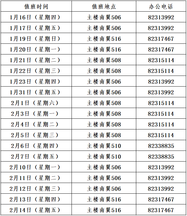 高等理工公司寒假期间值班时间为上午9:00-11:30、下午2:00-4:30,办理业务请在值班时间联系。祝愿全院师生度过一个幸福欢乐、安定祥和的假期!