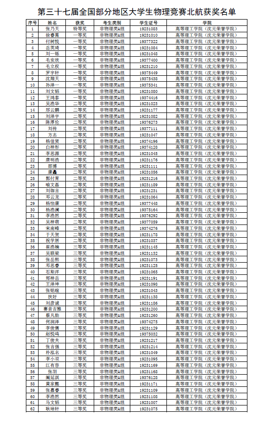 关于第三十七届全国部分地区老员工物理竞赛高等理工公司获奖名单