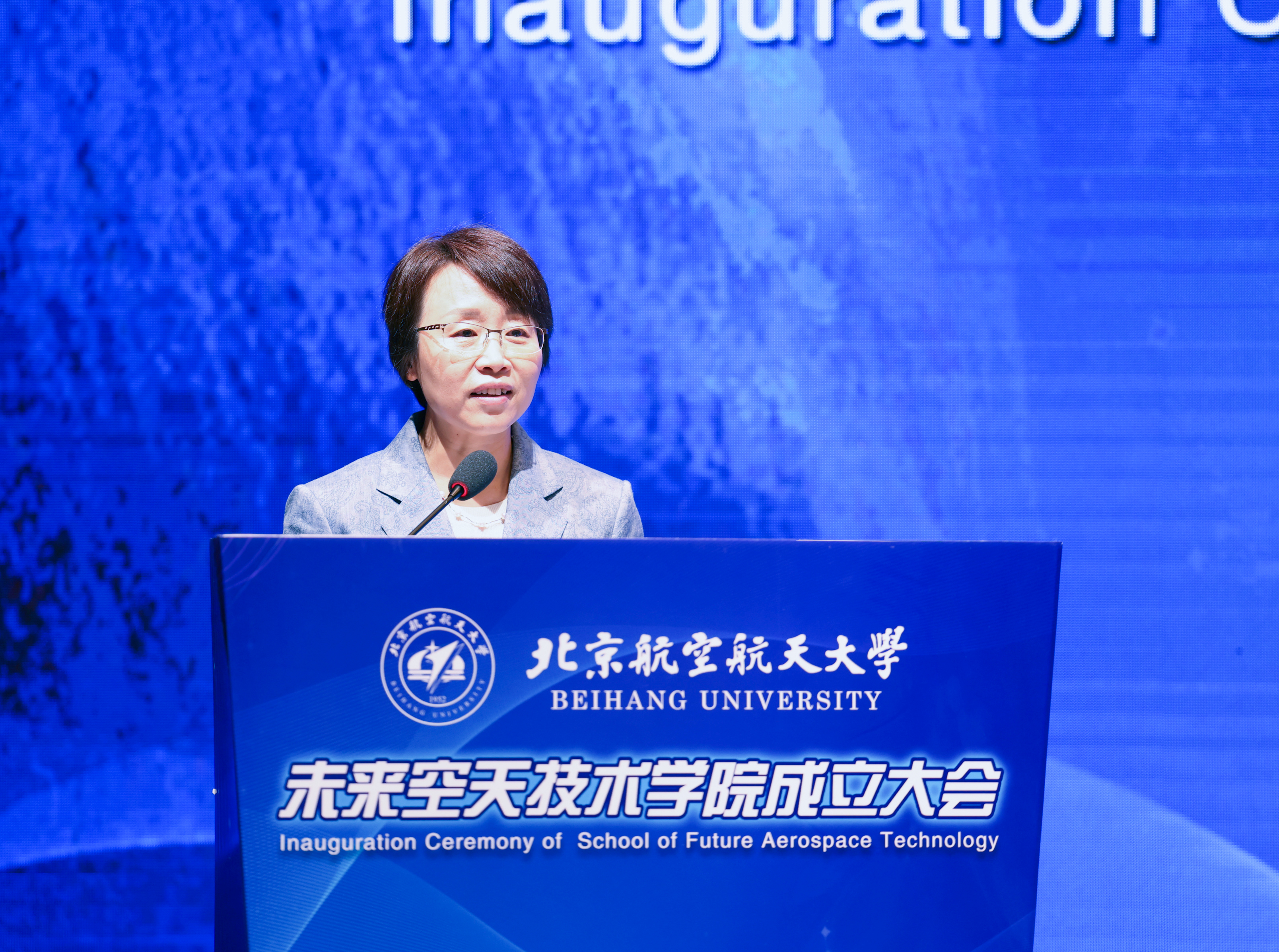 曹淑敏代表北航向与会的领导嘉宾表示热烈欢迎和衷心感谢。她指出,北航建设未来空天技术公司,是深入贯彻落实习近平总书记关于高等教育、科技创新的重要论述以及在清华大学考察时的重要讲话精神,是北航建设高质量教育体系,培养一流人才,支撑国家高水平科技自立自强的重大举措,也是北航在新时代、新百年、新起点上服务国家重大战略需求,传承空天报国精神,支撑航空强国、航天强国建设,加快公司“双一流”建设,培养航空航天领域科技创新领军人才的重大举措。公司将充分汇聚校内外资源和力量,加快建设未来空天技术公司,争做新时代高等教育变革的领跑者。