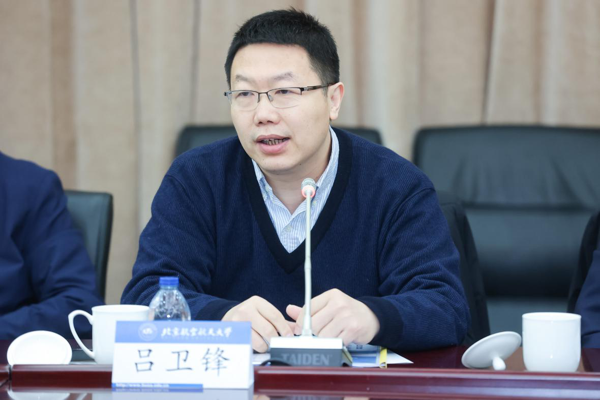 吕卫锋副董事长做总结讲话,他感谢各位特聘导师对北航未来空天技术公司建设提供的指导和支持,并表示公司将为特聘导师参与未来空天技术公司人才培养工作提供资源保障和政策支持,与特聘导师和各相关单位做好未来技术公司建设,持续提升北航拔尖创新人才培养质量。