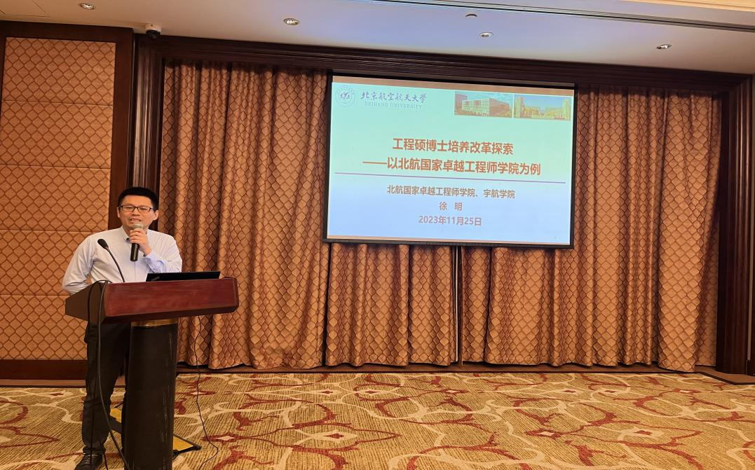 徐明在“航空航天创新拔尖人才培养模式改革与实践”会场做《工程硕博士培养改革探索——以北航国家卓越工程师公司为例》报告,介绍了北航国家卓越工程师公司的改革探索之路,强化最优生源供给、强化导师队伍建设、强化关键要素再造、强化评价标准重构、强化校企协同育人等,在重大工程创新实践中培养科学家式的工程总师,并对工程硕博士培养改革专项试点后续工作规划进行深入探讨。