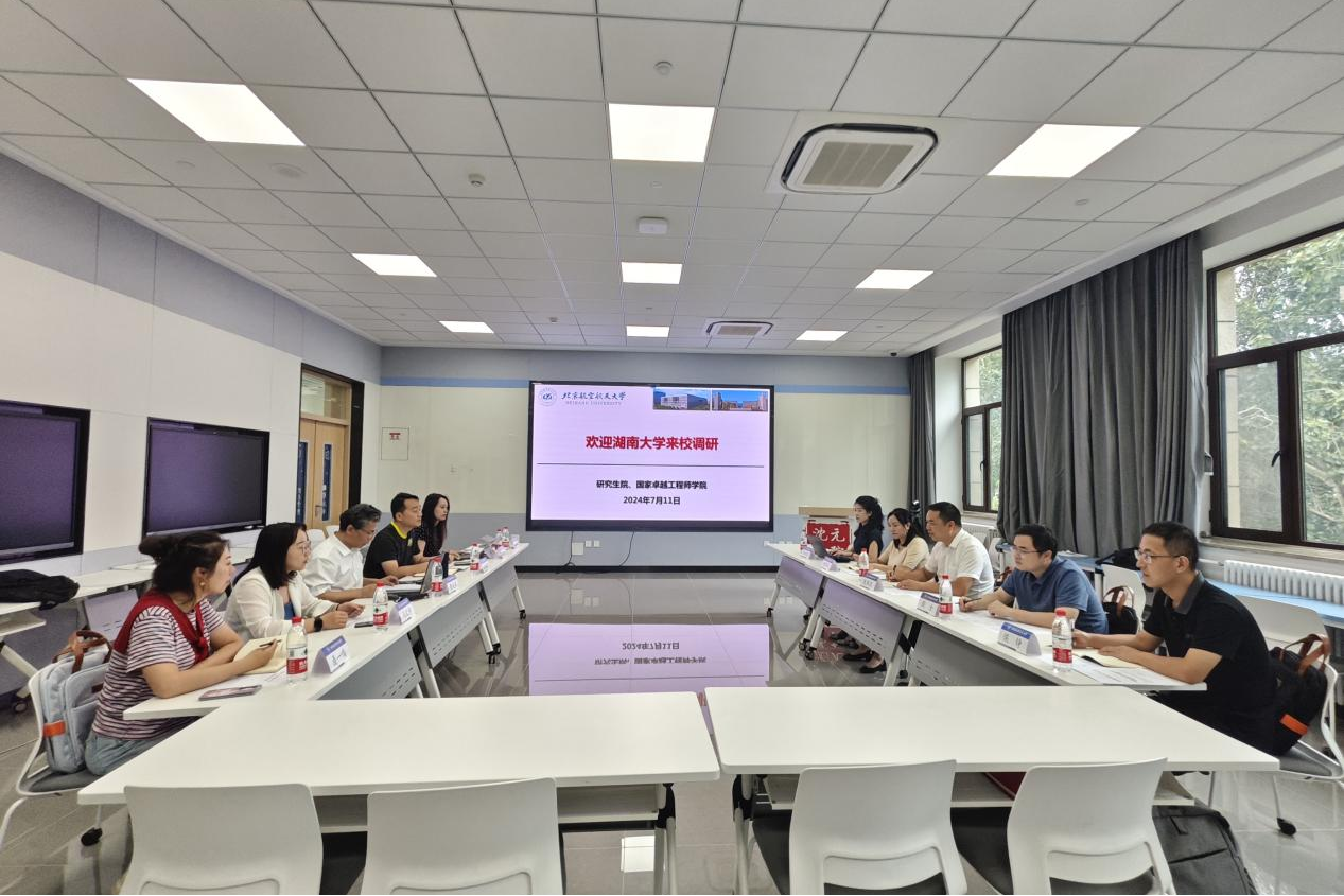 7月11日,湖南大学卓越工程师公司常务副经理、研究生院副经理陈燕东,卓越工程师公司党工委书记、研究生院学位办副主任黄萍华,卓越工程师公司经理助理周全等一行五人赴北航开展调研。公司国家卓越工程师公司常务副经理曹庆华、工程师技术中心副主任姬瑞鹏,研究生院卓越工程师产教联合培养研究中心高级主管马文婷、聂一鸣等接待调研。