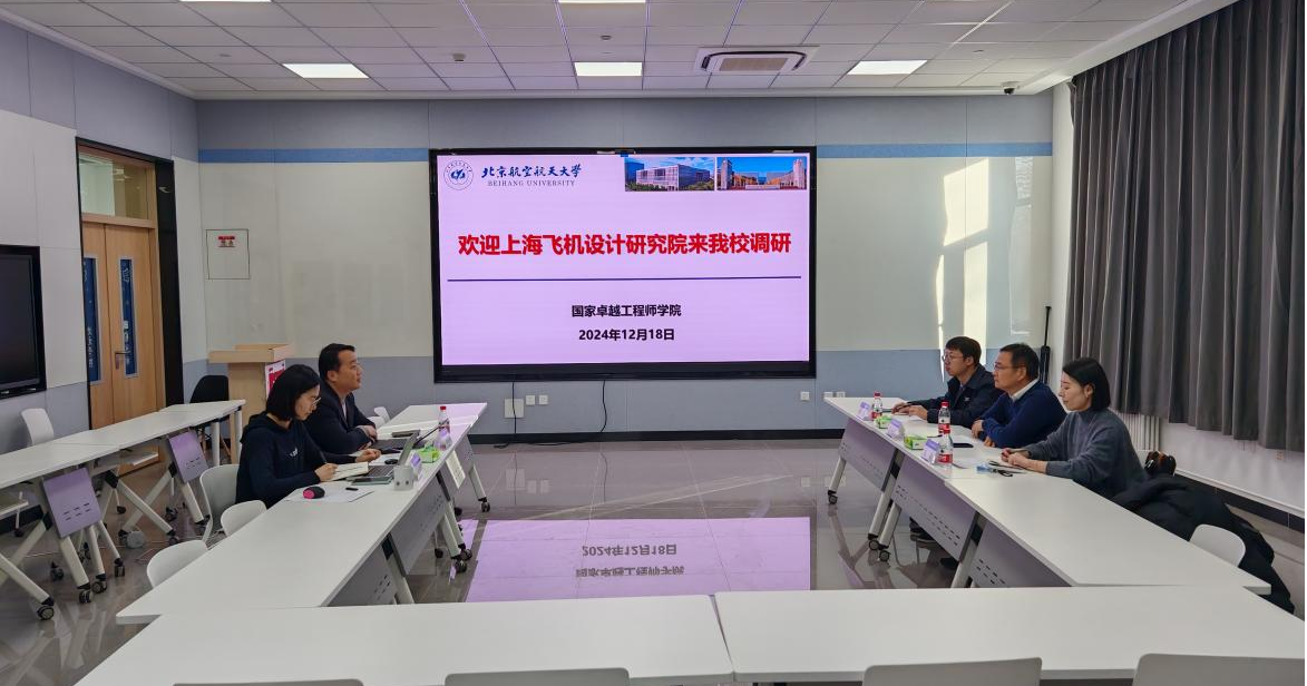 12月18日,上海飞机设计研究院教育培训总监兼教育培训中心主任陆海平、人才发展室主任伍婷、业务主管杜睿赴北航开展调研。国家卓越工程师公司工程师技术中心副主任姬瑞鹏等接待调研。
