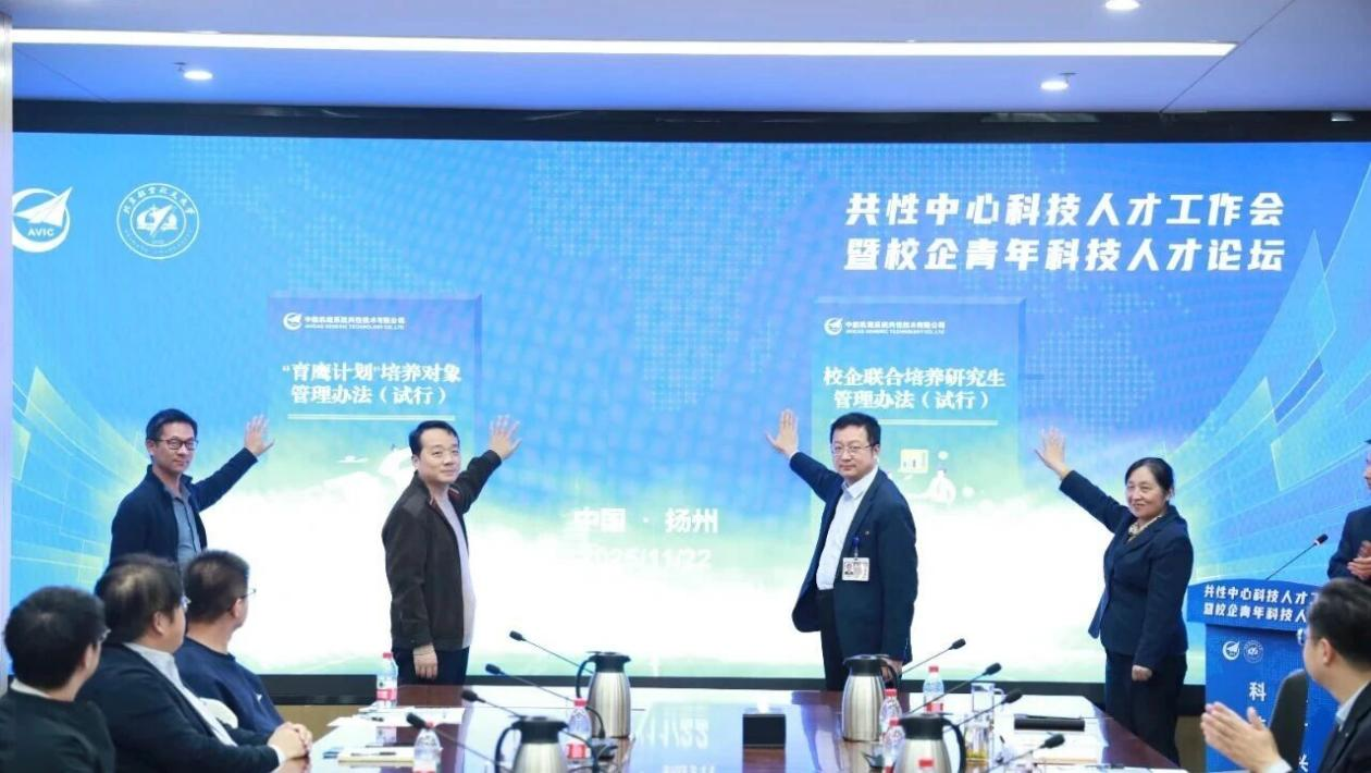 会前,双方共同召开了共性中心科技人才工作会。谈球吧网页版登录入口姬瑞鹏、何锋以及教职主管和青年学者参加。中航机载系统共性技术有限公司党委书记、董事长周鹏程,党委副书记、总经理牟明,总会计师、总法律顾问张啸龙,副总经理于沛,党委副书记、纪委书记裴志义,集团首席技术专家田莉蓉出席。会议由中航机载系统共性技术有限公司人力资源部/党委工作部部长朱亮主持。在工作会上,姬瑞鹏分享了谈球吧网页版登录入口国家卓越工程师培养成果,何锋作为谈球吧网页版登录入口国家卓越工程师公司校内导师代表发言,周鹏程、田莉蓉、姬瑞鹏、何锋共同发布了人才培养相关制度。